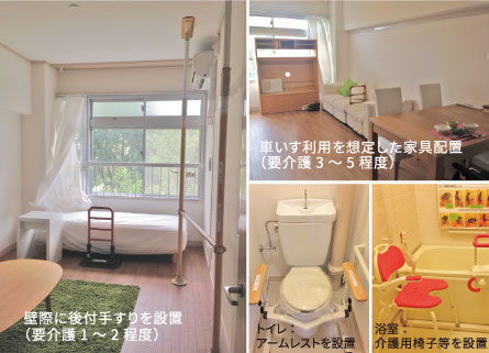 森之宮病院と連携し、空き住戸を活用し、理学療法士・作業療法士による生活状況に応じた暮らし方の提案・介護手技指導を行う体験型モデルルームを整備しています。