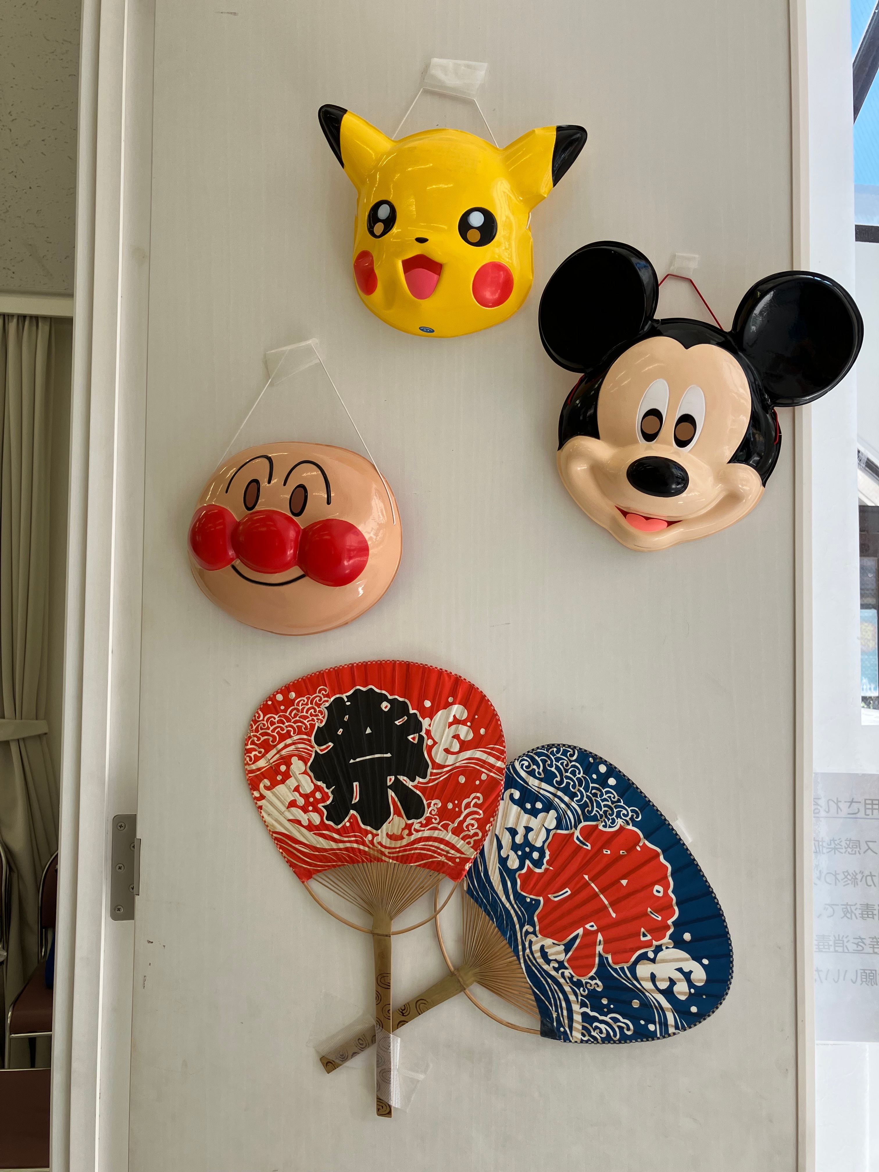 お面などを飾りつけて、お祭りの雰囲気を出しました