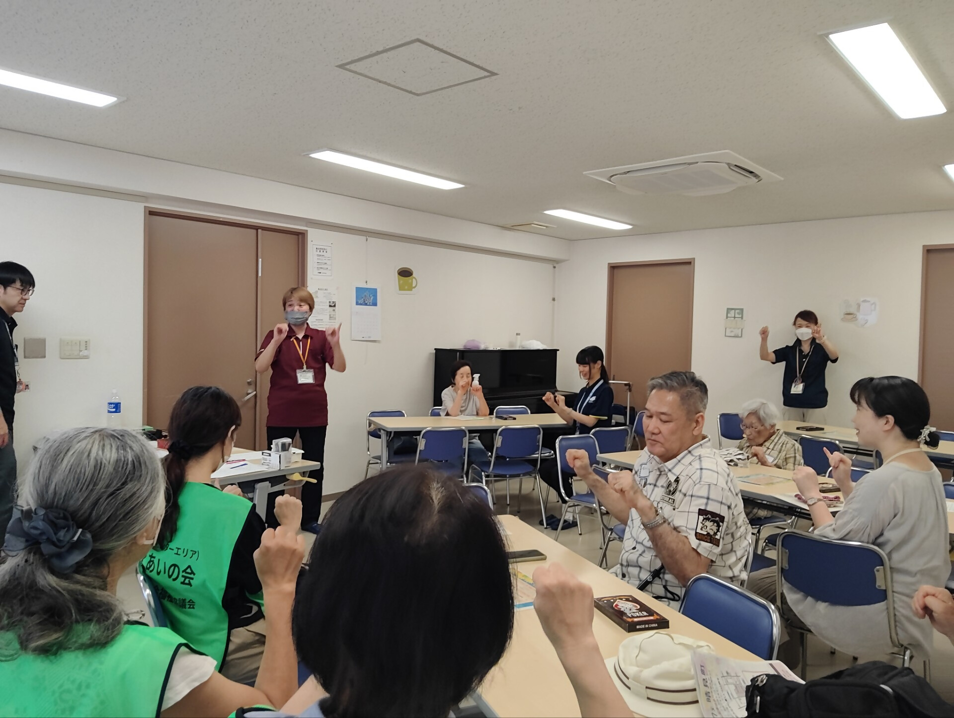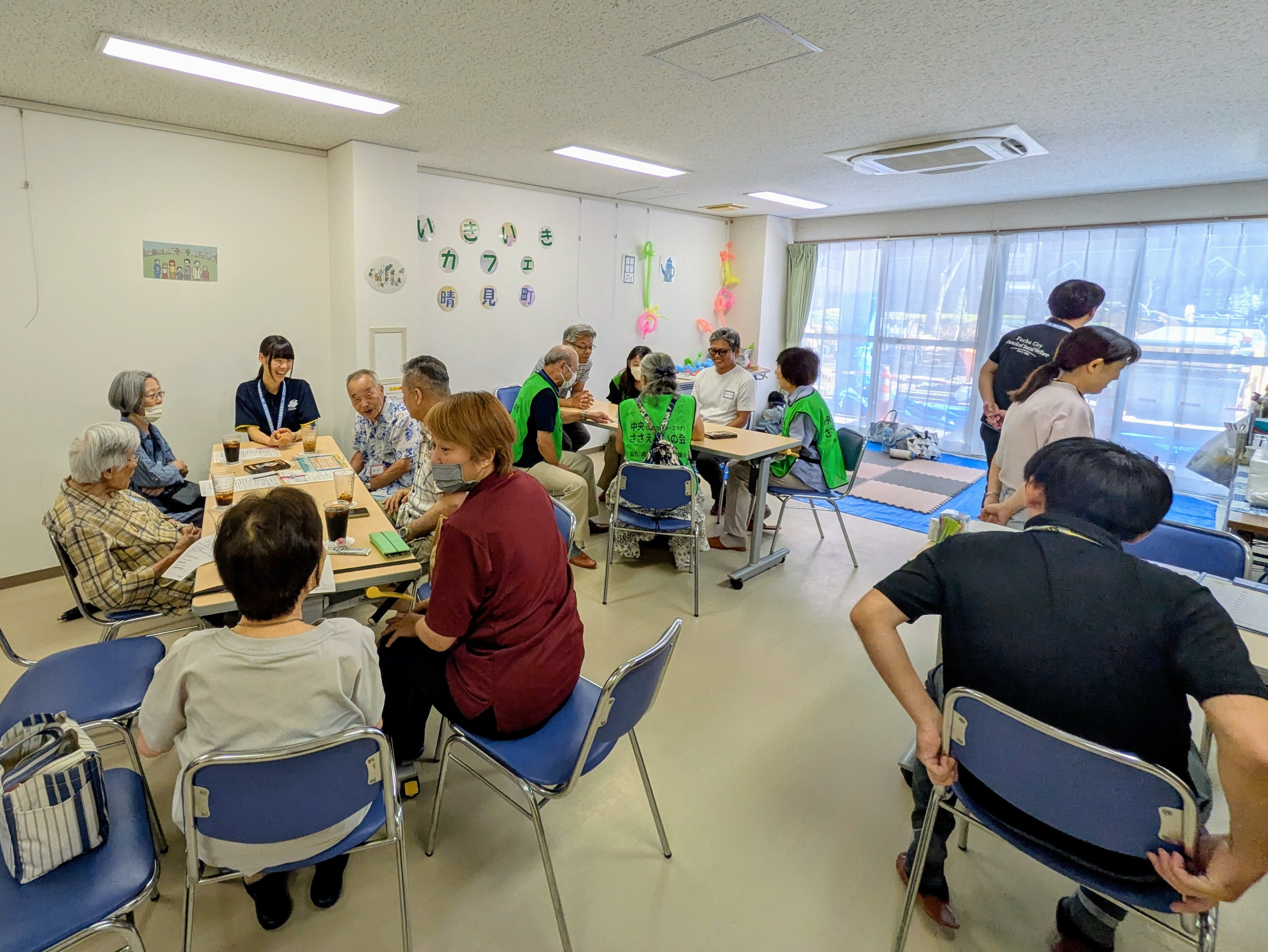 新たに晴見町商店会が参加した晴見町連携づくり会議(※)が主催し、地域包括支援センターからの熱中症対策などに係る講話や認知症予防体操の後は、コーヒーを飲みながら、サイコロトークやトランプを楽しみました。