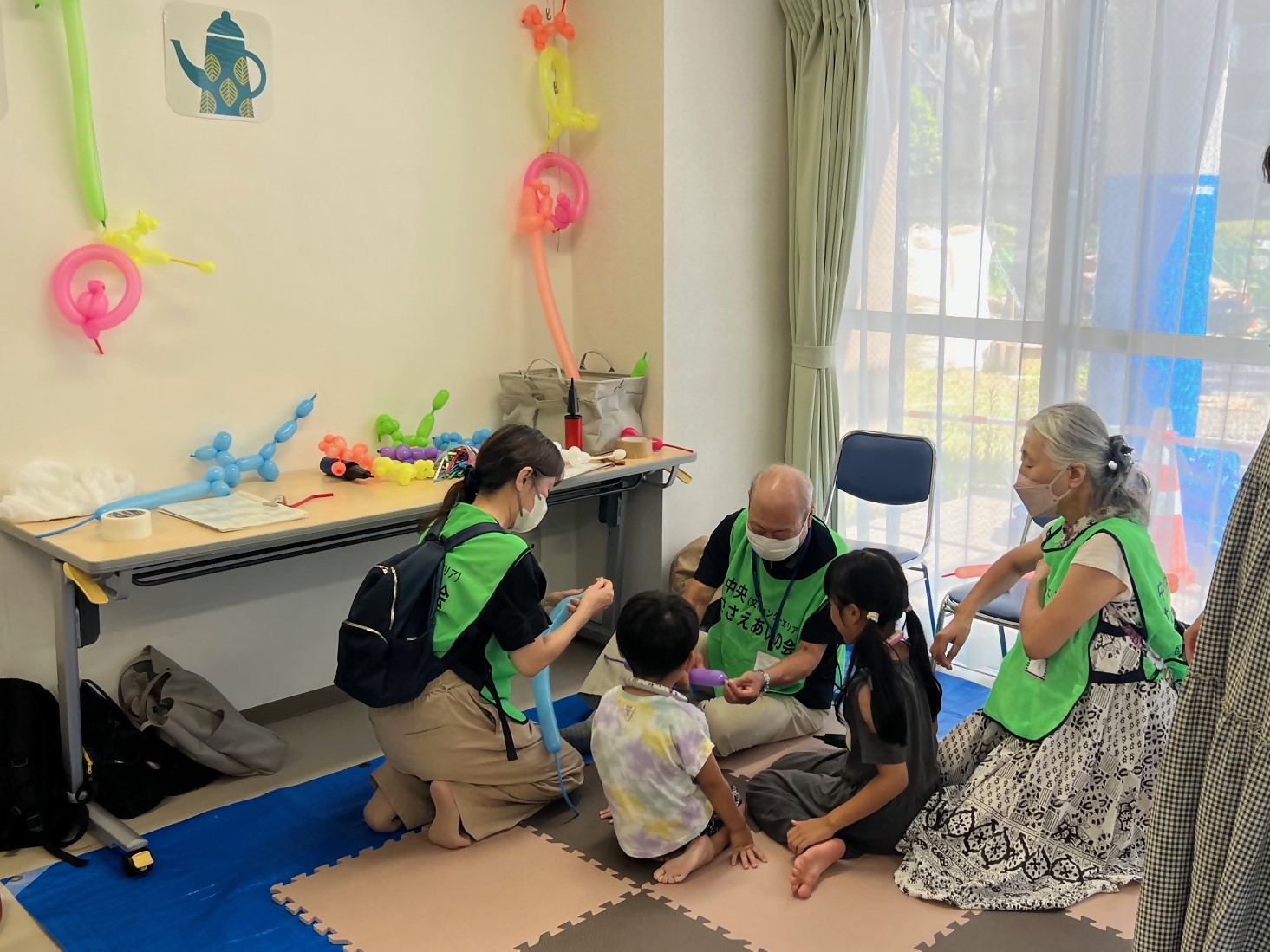 当日は夏休み期間中ということもあり、こども向けにバルーンアートや輪投げも準備し、晴見町連携づくり会議のメンバーおよびこどもを含めて約30人が参加しました。