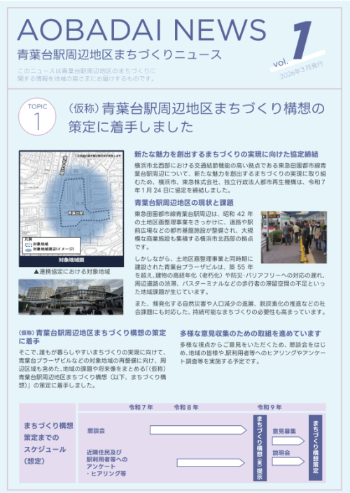 この一環として、3月23日(月)に、「青葉台駅周辺地区まちづくりニュース Vol.1」を発行しました。