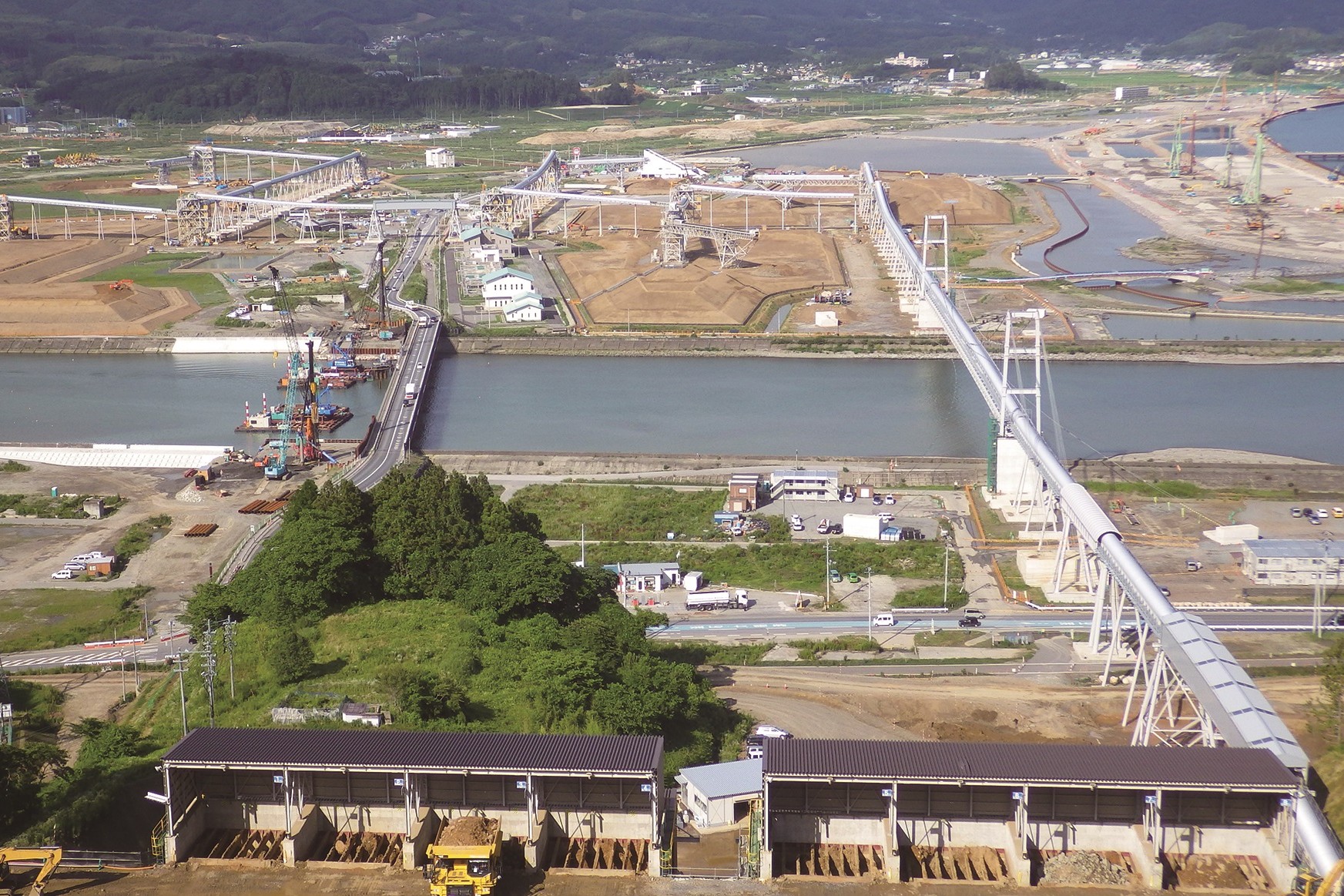 一方で、宮城県は防潮堤については岩手県と同様ですが、防潮堤と同じ高さで上流まで嵩上げを行う(「バック堤」と呼ばれておりました)という考え方となっています。河川堤防の嵩上げにより市街地が窪地となるため、内水排除のために市街地の嵩上げを多くの地区で行いました。これにより、工事ボリュームが大きくなる反面、市街地からは海が望める状況となっています。お互いに善し悪しがありますが、県の方針による違いが生じたためであり、どちらが良い悪いではないと思います。