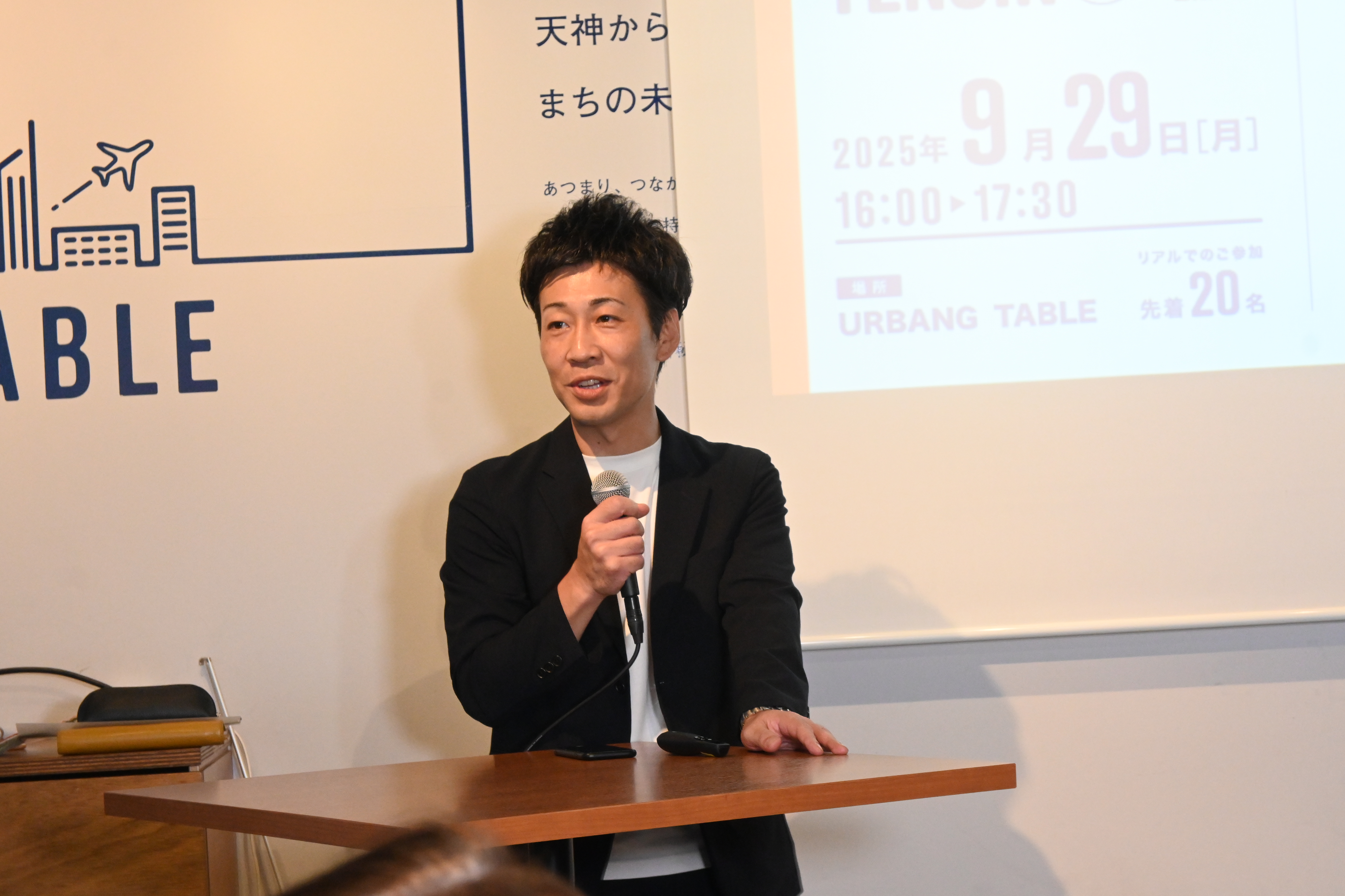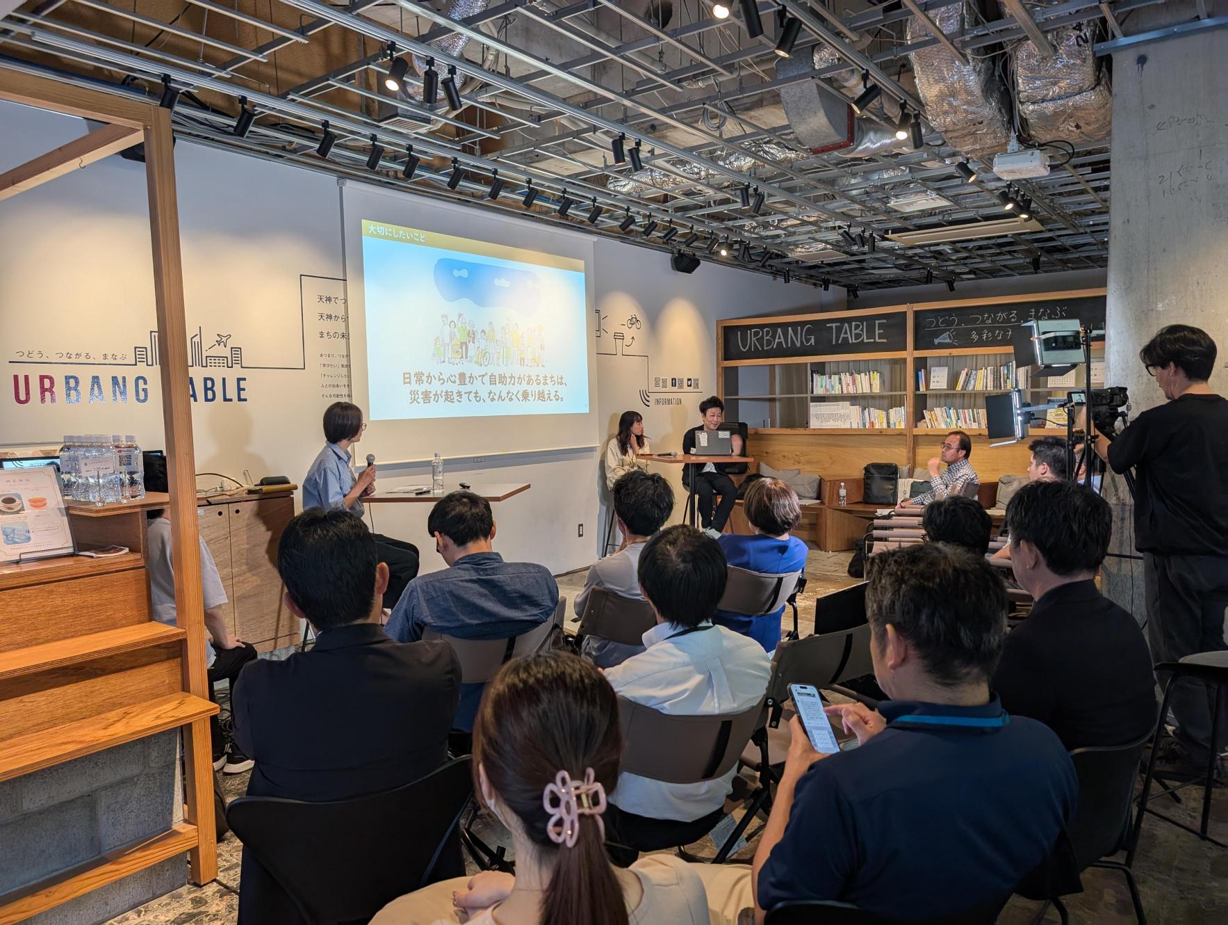 9月29日(月)、URBANG TABLE(福岡市中央区天神)で、ゲストにWe Love 天神協議会事務局次長の川﨑さんと、株式会社いのちとぶんか社取締役の葛西さんをお招きし、「地域で守る!天神防災セッション~大規模災害時に地域としてできる備えを考える~」をテーマにトークイベントを開催しました。