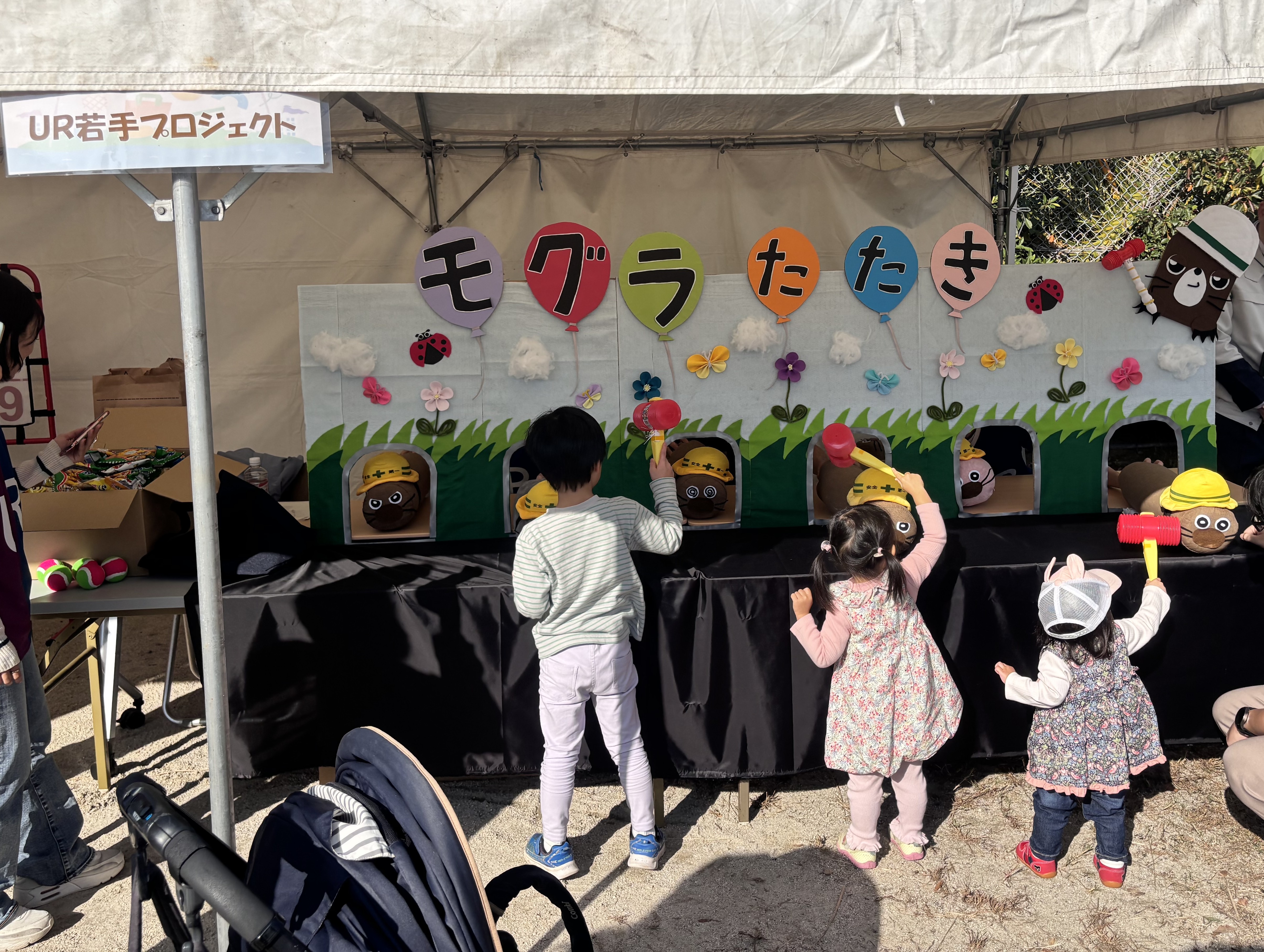 UR若手職員による手づくりのもぐらたたきも、子どもたちに大盛況 -