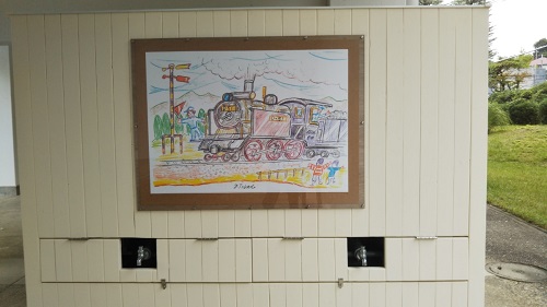 貯水槽を飾り付け。絵は住民さんが描いたデゴイチ -