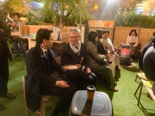 「オトナ・やわらか・MUSIC」を合言葉にボサノバなどを演奏するギター&ボーカルユニット「Sunset Cocktail(サンセットカクテル)」がクリスマスソングなどを披露し、会場は穏やかで心地良いムードに包まれました。また、BASE YATAI project※2として、おしゃれな焼き鳥の屋台も出店し、行列ができるほど大盛況でした。来場者からも、「極上の体験だった」「素敵な演奏でした」との声をいただき、にぎわいあふれるイベントとなりました。