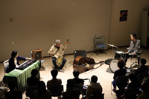会場でのライブには60人の定員を超える申し込みがあり、参加者はプロミュージシャンによるジャズスタンダードに、体を揺らしながらリズムをとって楽しんでいました。
