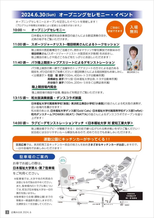 6月30日(日)、愛知県知多郡美浜町に新たな陸上競技場が完成し、オープニングセレモニーが開催されます。
