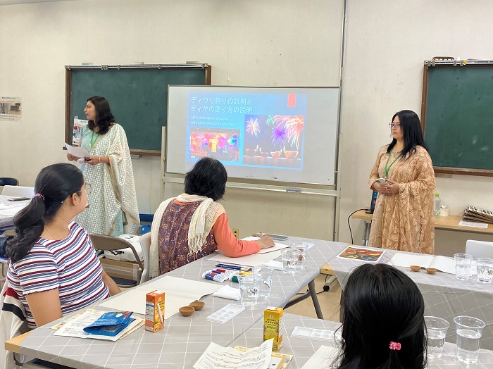 近くにお住まいのインド出身の方が講師となり、インドのお祭りの一つである“ディワリ”でお祝いに使うランプの色付け体験を行いました。参加者は、講師からディワリやランプの意味について説明を受け、インドの文化への理解を深めました。