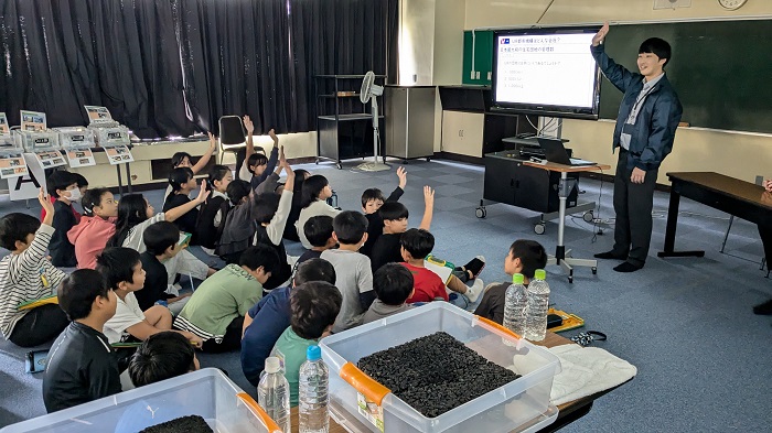 10月30日(水) 、11月5日(火)に袖ケ浦西小学校(千葉県習志野市)と柏第六小学校(千葉県柏市)で出前授業(通称:リサイクルスタディ※)を実施しました。袖ケ浦西小学校では2回目、柏第六小学校では3回目の開催となり、今年は2校合わせて4年生約120人が参加しました。