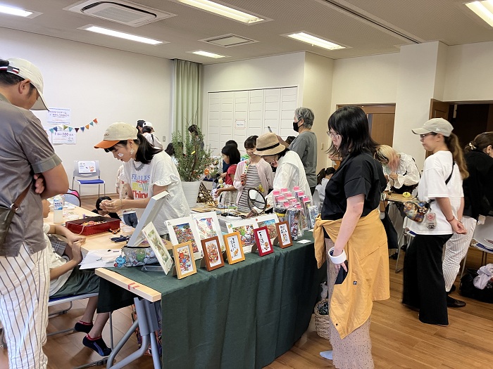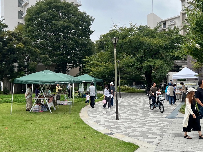 5月のマルシェは雨のため集会所での実施となりましたが、今回は広場も使用して開催することができ、300人以上の来場者でにぎわいました。
