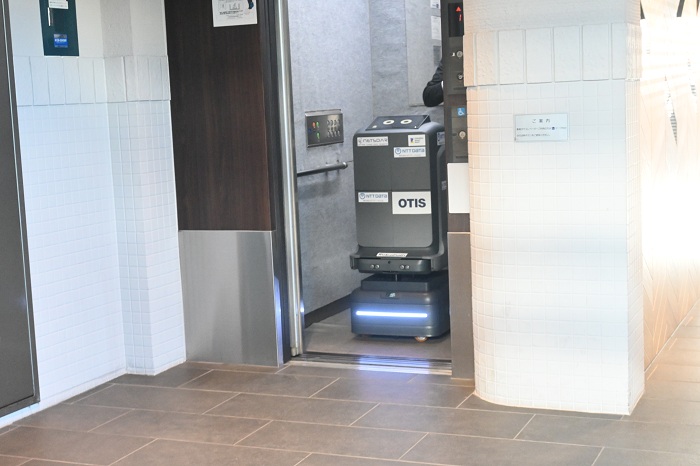 荷物を部屋まで運ぶため、エレベータを自ら呼ぶロボット -