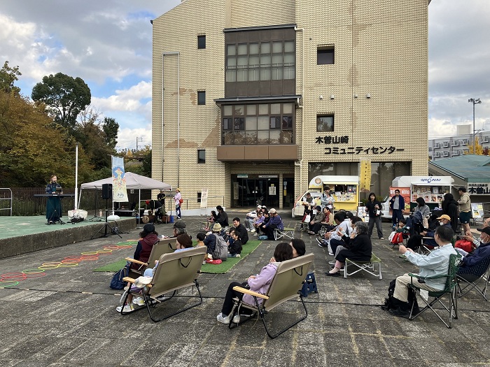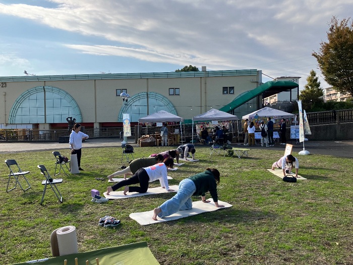 15日(土)は、都立山崎高校を中心とした地域の学校・幼稚園などが行う「まちやま祭」も同時開催。ステージでの発表、芝生広場でのヨガ体験、手作りワークショップなどを、多くの来場者が楽しみました。当日、ワークショップで作った「ヤーンボミング※」は令和8年1月まで団地内の広場に展示します。