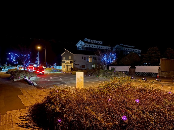 周辺の通りもイルミネーションツリーやペットボタルで点灯 -