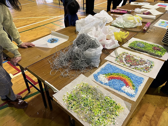 石川県立輪島高等学校体育館で、地域にお住まいの方とアップサイクルランタンを製作(加工前の様子)