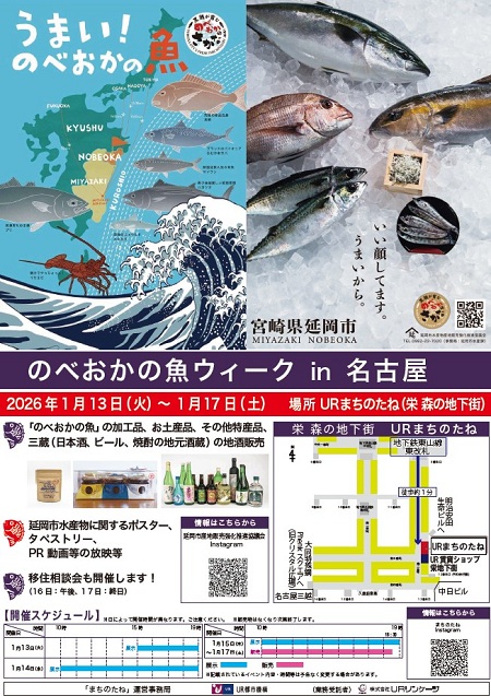 名古屋市中区栄「森の地下街」の「URまちのたね」で、宮崎県延岡市がPRイベントを実施します。