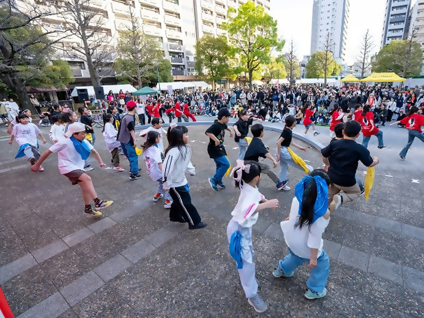 団地、地域を元気にしようと一生懸命演奏やダンスを披露するこどもたちの姿を応援することで、共助(近助)の気持ちが高まったステージ -