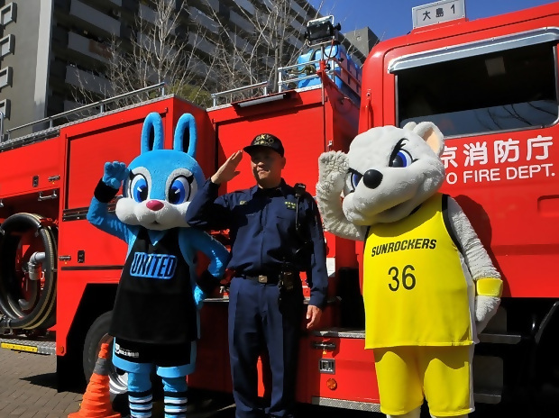 プロバスケットチームのマスコットのサンディ&ユナイトと一緒に防災体験 -
