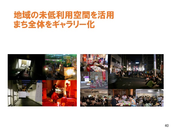 - 拠点ができたからといって、情報が届かないと誰も気がつかないし来てもくれません。そこで考えたのが、クリエイティブクラスを呼び込むためのアート・都市イベントの実施です。立ち上げ時点では、東京デザイナーズ・セントラル・イースト、翌年からはセントラル・イースト・トーキョー、通称「CET」と呼ばれているイベントです。