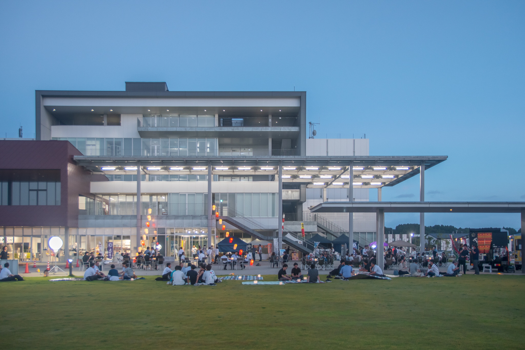 双葉町産業交流センター(F-BICC)と隣接する芝生広場にて行われた2025年の「ふたば星空夜市」
