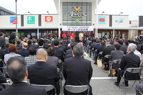 セレモニーでは、商業者を代表して高田松原商業開発協同組合の伊東代表理事から「いよいよ陸前高田の新たなまちづくりがスタートラインに立ち、大きく前に歩みだしてまいります。買い物の場、憩いの場、コミュニティの場として気軽に立ち寄り集える賑わいの拠点として、笑顔があふれ末永く愛される施設運営を目指してまいります。」と決意が語られたほか、戸羽陸前高田市長は「この場所は、大勢の方々のご協力により整備頂いた。今日の日を迎えることができ感慨もひとしお。陸前高田市がこれから本当の意味での復興を遂げていくためにも、この中心市街地を真ん中に据えて、しっかりまちづくりをしていきたい。この場所が本当の意味で笑顔があふれる場所になるように祈念します。」と挨拶されました。