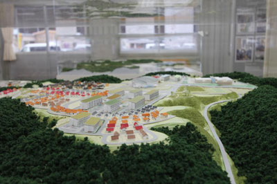地元志津川高校美術部の皆さんと一緒に制作した高台造成地区の完成予想模型です。