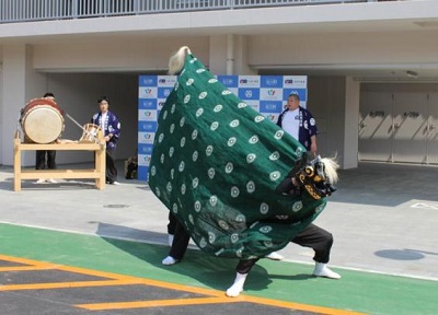 式典の最後には、女川町伝統の獅子振り(獅子舞)が披露され、お祝いムードが広がりました。