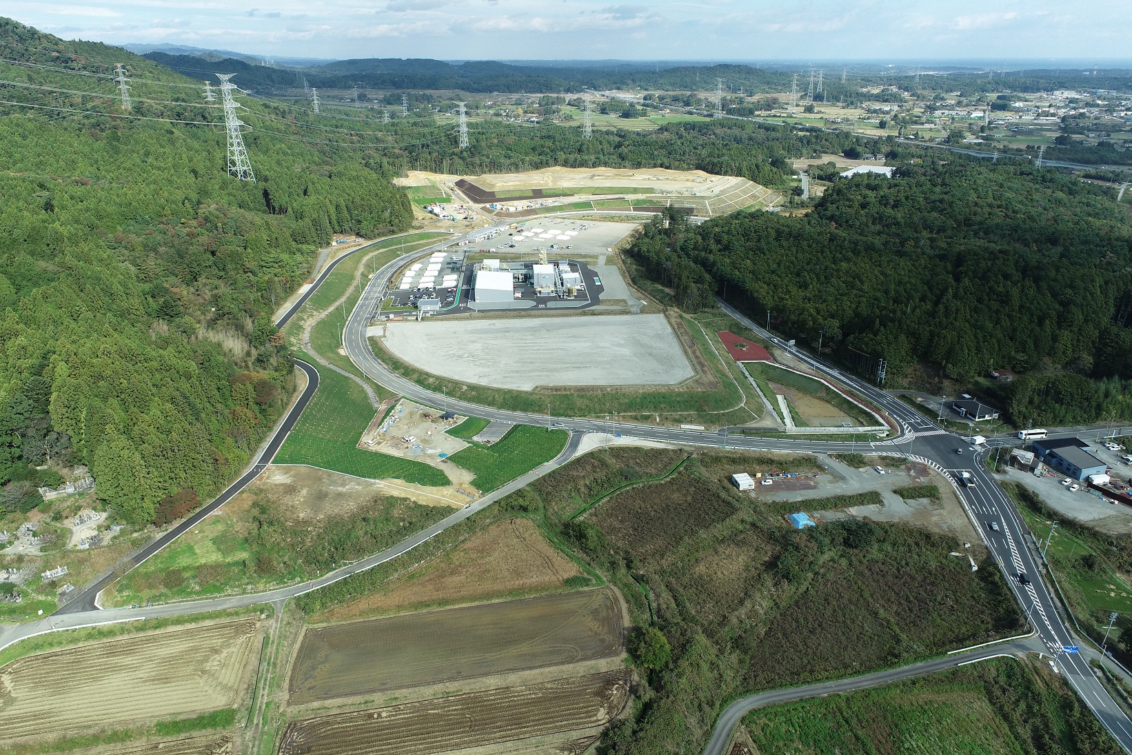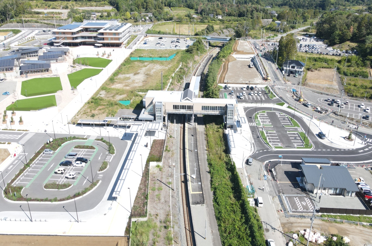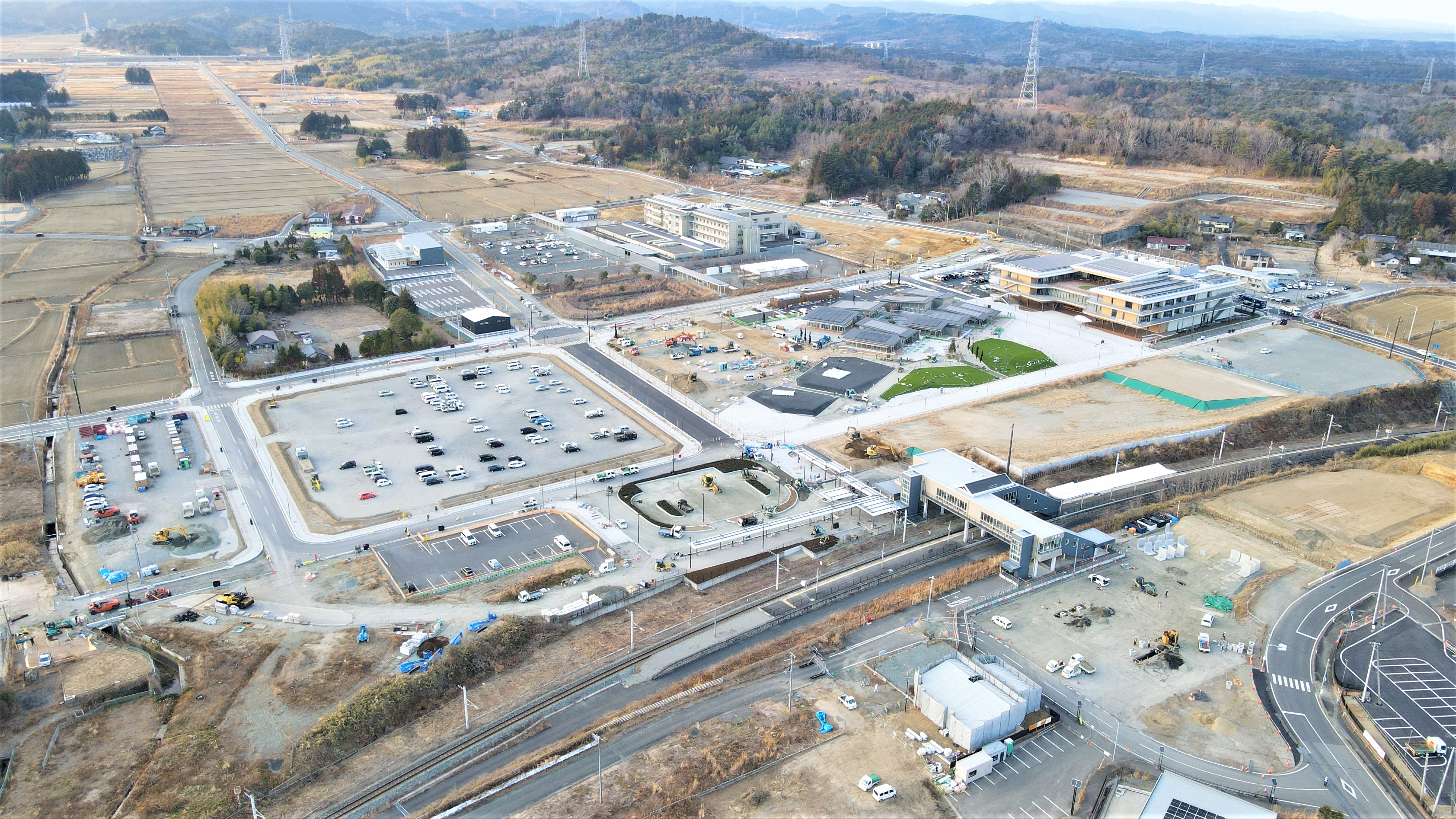 大熊町下野上地区におけるJR大野駅周辺の復興拠点整備の様子(令和7年12月)