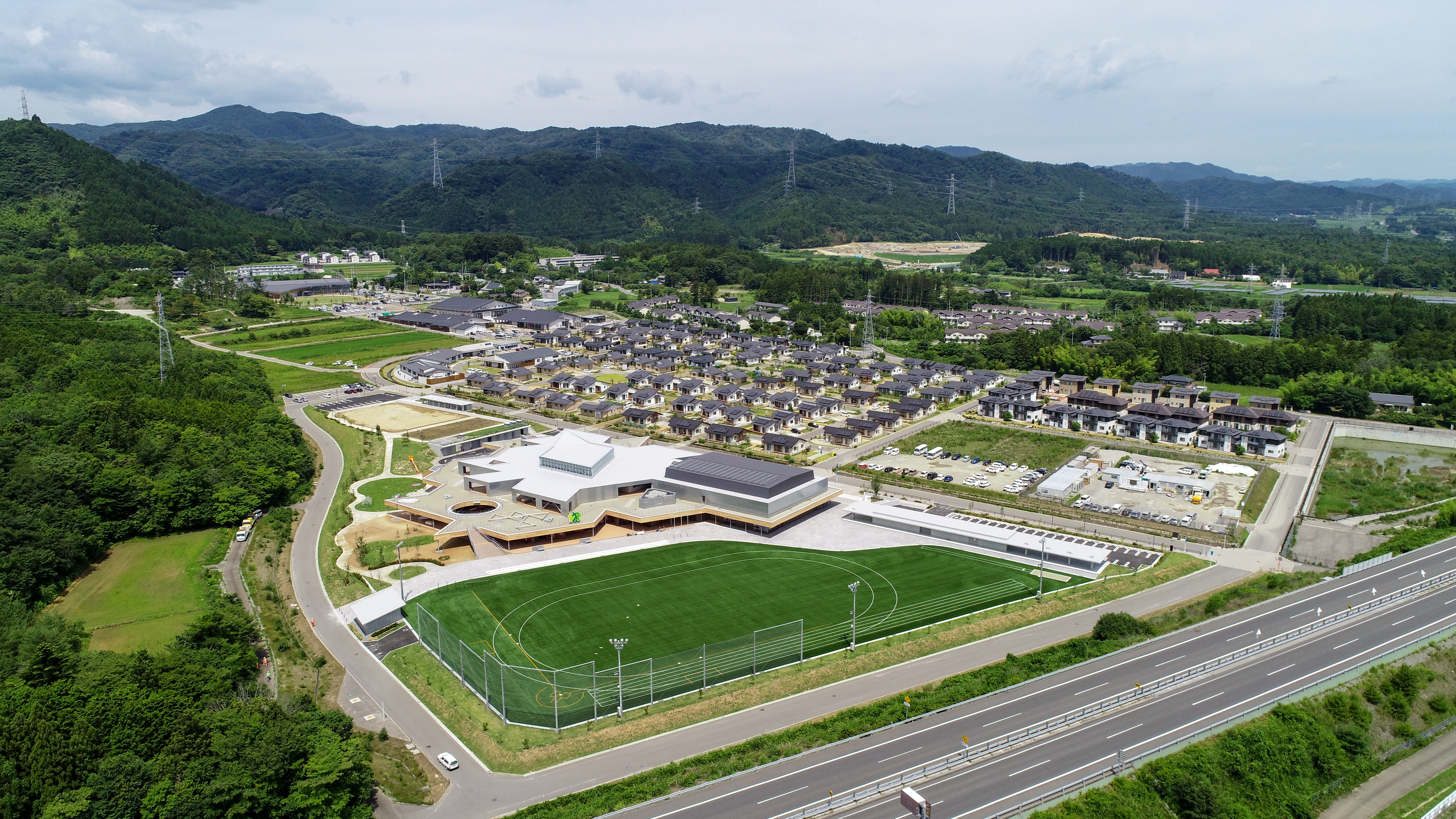 大熊町の最初の復興拠点と位置付けられた大川原地区における事業は令和3年3月に完了。引き続きJR大野駅周辺を中心とする下野上地区、就労や雇用創出の場と位置付けられている大熊西工業団地の復興まちづくりを推進しています。