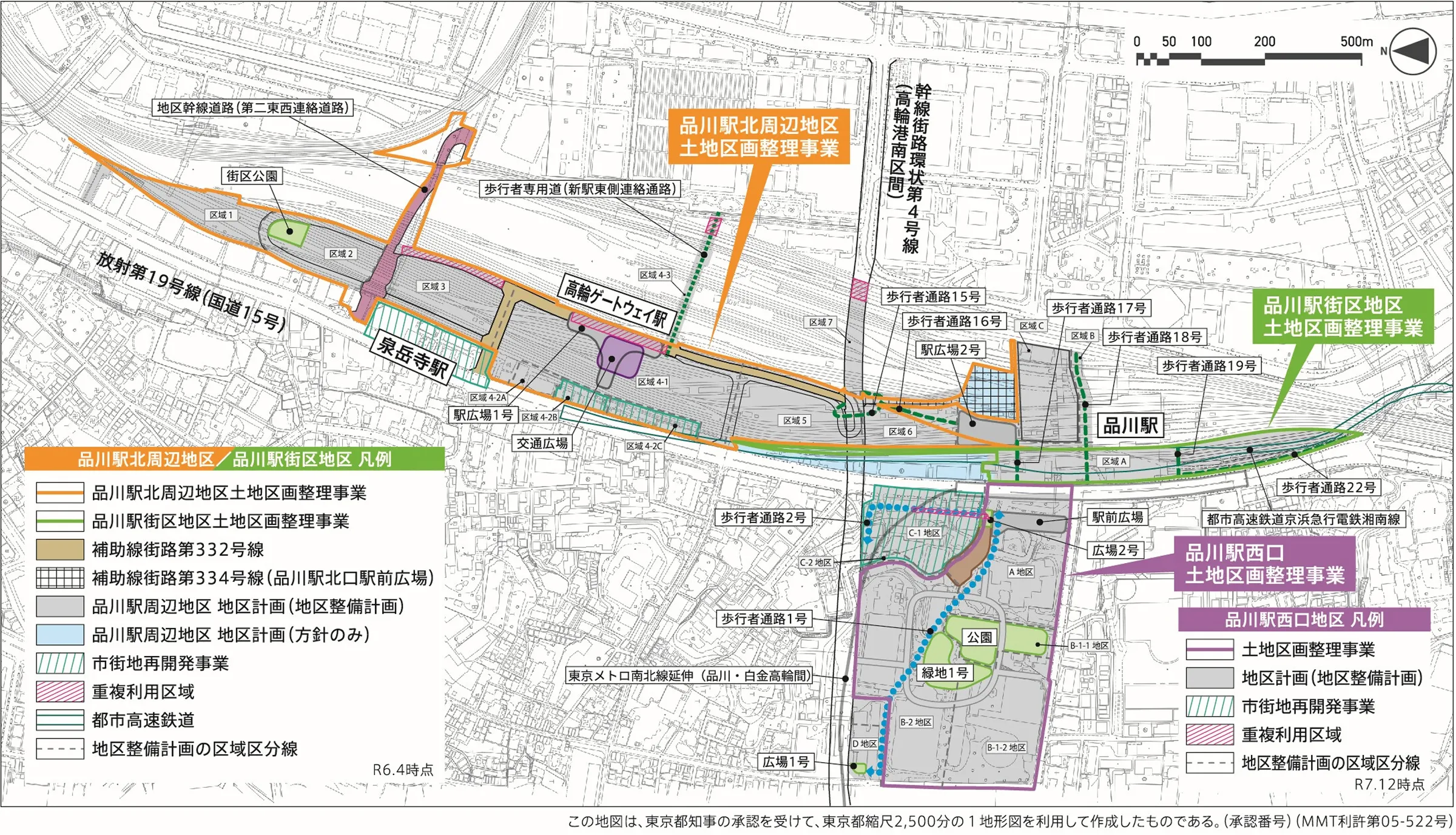 土地区画整理事業UR都市機構施行の土地区画整理事業により、高輪ゲートウェイ駅を核としつつ、