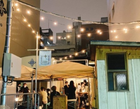 まちづくり活動の拠点(暫定的な活用)として、更地にテントを整備した「+ PLUS LOBBY」を運営しました。中央区と調整し地元街づくり会社と協力することで、隣接する区所有駐車場と一体的に活用させていただきました。+ PLUS LOBBY運営者にて、まちに関わる人を増やすことや、新たにまちに関わる方と地域の方のつながりづくりを目指し、様々なイベントを実施しました。