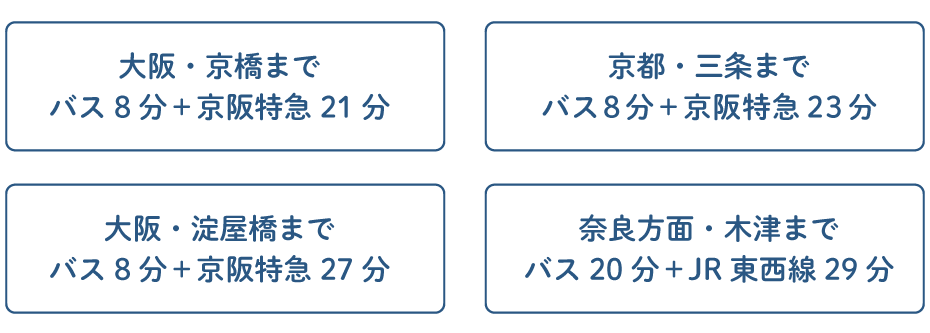 男山団地は京都と大阪の間、自然豊かな丘陵地に位置します。A地区からD地区まで4つのエリアで構成され、総戸数4500以上からなる関西でも指折りの大規模団地です。ロケーション、都市圏へのアクセス、住民のコミュニティ、生活を支える施設や公共サービス、どれをとっても「ほどよい暮らし」を実現できる環境が整っています。新しい毎日を、ここ男山団地で始めてみませんか。