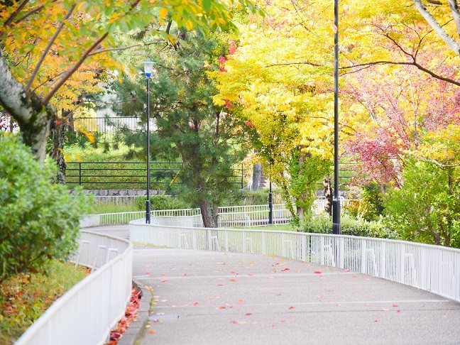 敷地内の歩道の柵は、団地内で統一感が出るようにシンプルな白系統でまとめました。