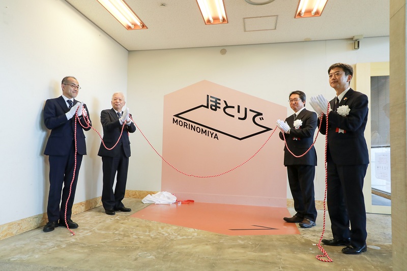 「ほとりで」ロゴの除幕式の様子 「ほとりで」ロゴの除幕式の様子