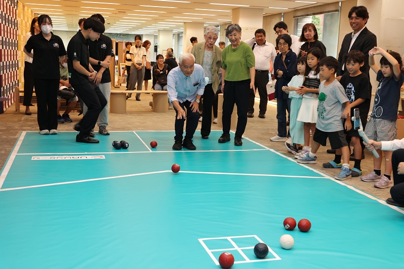 オープニングセレモニーでは、「ほとりで」ロゴの除幕式および大通りに面する入口の開場後、地域の方約80人が来場し、森之宮病院の講演会やWell-being共創研究センターによるボッチャ体験会、ボランティアセンターによるラクガキペイントキッズなどに参加されました。