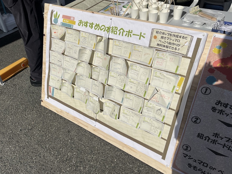 今回の社会実験は、現図書館前の駐車スペースを将来の広場に見立てて活用し、施設のコンセプト「セッション(出会い)」を生み出す目的で市民が主体となりワークショップを何度も開催し、提案・実現しました。当日は、本の紹介ポップづくりやボードゲーム大会など多彩なプログラムが行われ、親子連れをはじめ多くの地域住民が訪れ、秋晴れの下で読書や交流を楽しむ3日間となりました。