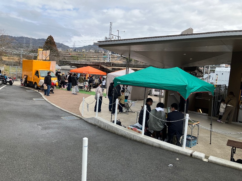 同時開催の花山駅前マルシェも、鉄道グッズの販売などもありにぎわいました。 -